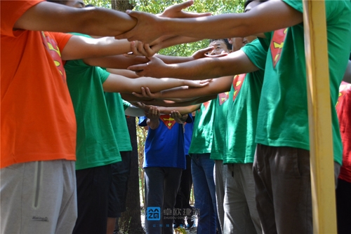 站在1.6米的高臺,毫無顧慮的躺下去,需要的不僅是勇氣,還有對臺下隊員的充分信任,下面的隊員用自己的胳膊搭起堅強(qiáng)的后盾,站在隊友倒下的方向,成功的關(guān)鍵是“信任彼此,信任團(tuán)隊”。