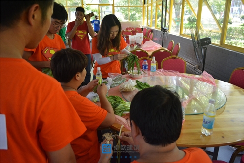 在上午的活動結(jié)束之后,公司組織所有隊員前往餐廳準(zhǔn)備午餐,每支隊伍都有同樣的食材,如何能讓大家開心吃到午餐就需要各自隊員的相互配合了。各隊的大廚動作嫻熟、各顯身手,充分發(fā)揮了自己精湛的廚藝,揮鏟舞勺中使得現(xiàn)場菜香撲鼻。