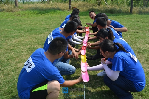該項目由四個小項組成,分別為不倒森林、擊鼓顛球、珠行萬里、我們最棒,每支隊伍每個小項只有兩次機(jī)會,總用時最短的隊伍獲勝。如何節(jié)約時間,如何提高成功率,需要團(tuán)隊每位成員高度配合、高度協(xié)作。