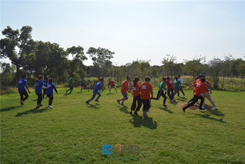 廝殺,逃跑,尖叫,追逐過程中難免碰傷、撞傷、摔倒,大家還是繼續(xù)奔跑。雖然時值一天中最炎熱的時候,但是撕名牌項目還是不斷激發(fā)著所有人的熱情,加油聲、吶喊聲不斷響徹在綠茵場上。