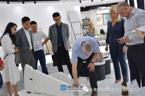 2019年5月13日,我司迎來(lái)了遠(yuǎn)道而來(lái)的重要客人——英國(guó)Spiral Cellars公司。Spiral Cellars 公司是世界上最大的酒窖制造商,迄今共承建了超過(guò)3000個(gè)酒窖。他們此次到訪的目的是對(duì)合同簽訂后的第一批UHPC酒窖異形構(gòu)件(UHPC采用了國(guó)內(nèi)領(lǐng)先專業(yè)UHPC品牌Ulcont優(yōu)抗特?)的質(zhì)量和精度進(jìn)行現(xiàn)場(chǎng)檢驗(yàn),并深化雙方的交流合作。我司董事長(zhǎng)劉輝先生對(duì)客戶的來(lái)訪表示熱烈的歡迎并進(jìn)行了熱情接待。