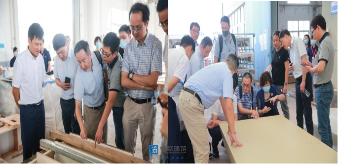 上海土木工程學(xué)會(huì)副理事長(zhǎng)兼秘書(shū)長(zhǎng)葉國(guó)強(qiáng),上海建科副總工專委會(huì)主任樊鈞,材料所副所長(zhǎng)韓建軍等領(lǐng)導(dǎo)及專家在我司董事長(zhǎng)劉輝、總經(jīng)理汪靜及合作伙伴Ulcont優(yōu)抗特?UHPC副總裁柯雄的陪同下,參觀了UHPC構(gòu)件生產(chǎn)工廠,并觀摩了UHPC異形大板的成型工藝和過(guò)程,對(duì)我司現(xiàn)階段UHPC生產(chǎn)工作予以高度評(píng)價(jià),并給出指導(dǎo)性建議與意見(jiàn)。